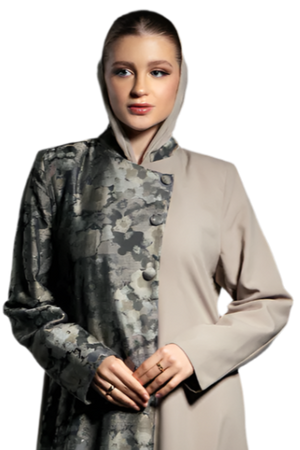 Echoed Threads is a statement abaya that captures elegance through every stitch. Designed in classic black, this piece features intricate embroidery in ivory, chocolate, and deep black threads, flowing gracefully across the chest, upper sleeves, and back. The wave-inspired pattern adds rich texture and subtle movement to its clean, straight-cut silhouette.