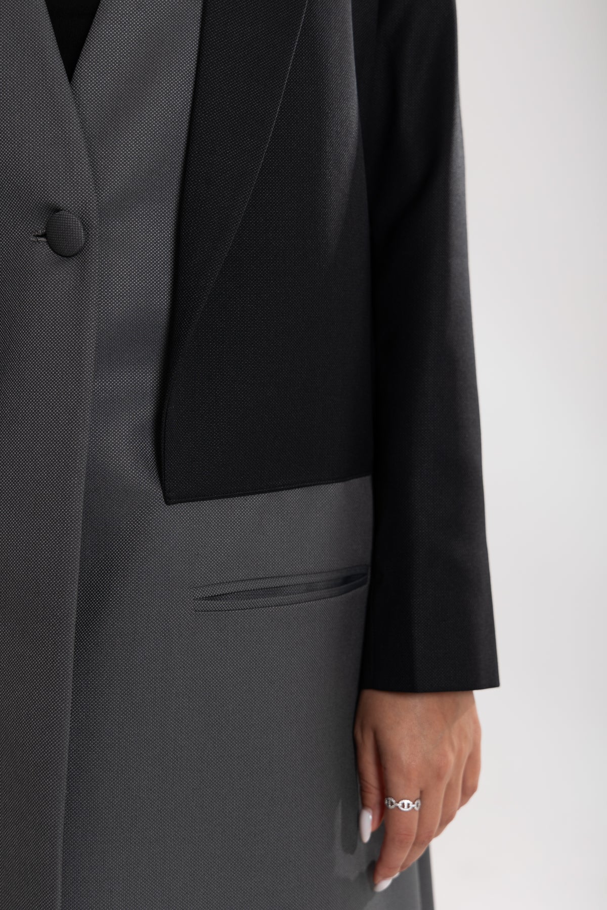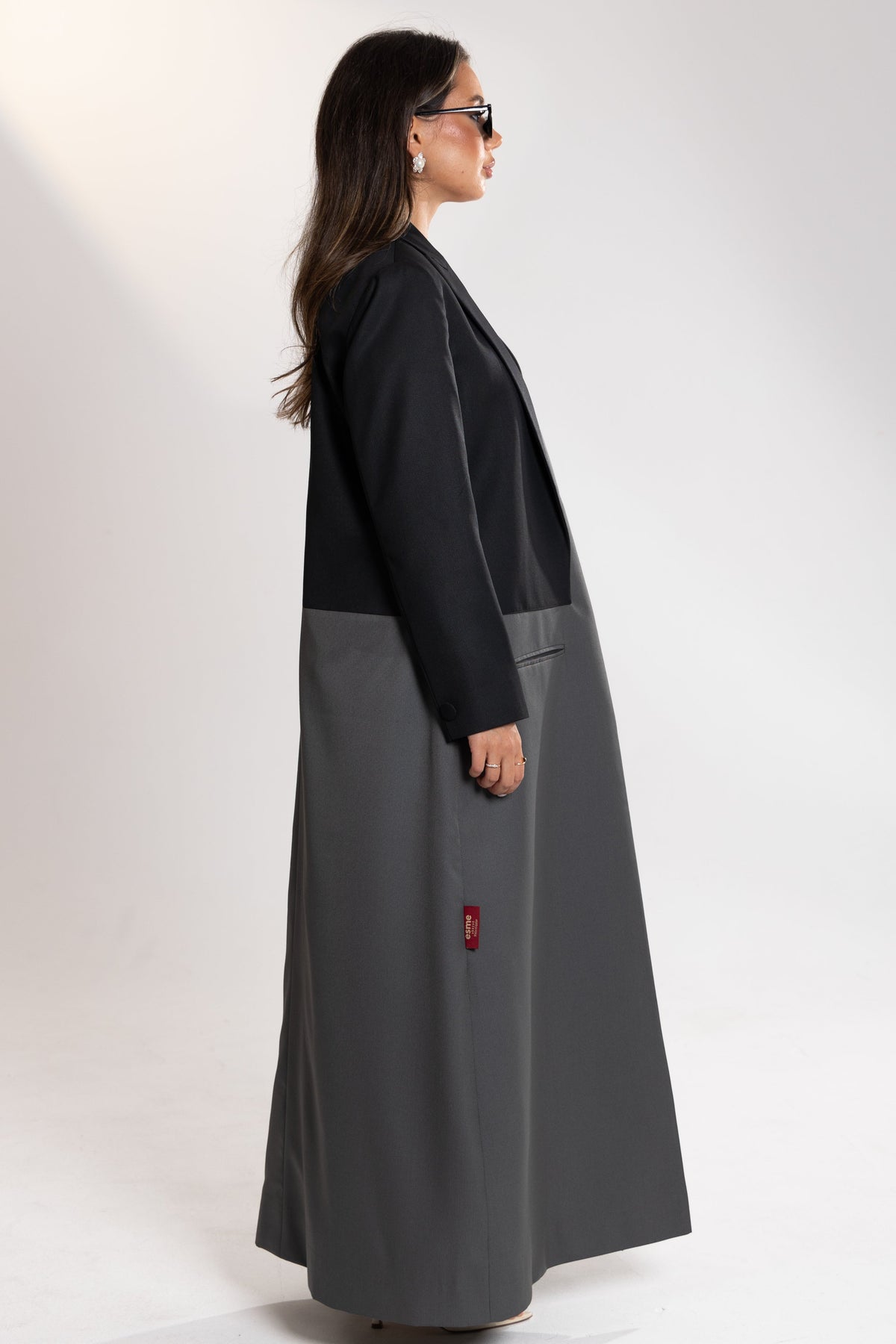 The Esme Twin Shadows Abaya is a sleek blazer-style design that harmoniously blends elegant shades of grey and black. Tailored to perfection, it embodies modern power, quiet confidence, and understated sophistication — the essence of Esme’s refined vision of modest luxury.